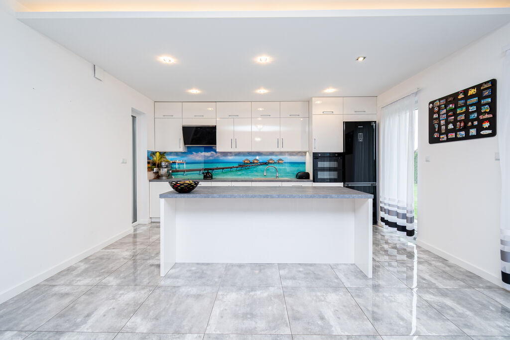 Salon z otwartą kuchnią – przestronny, z wyspą kuchenną